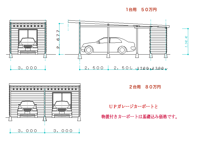 ※どの商品も、建築確認手数料、運送費は含まれません。